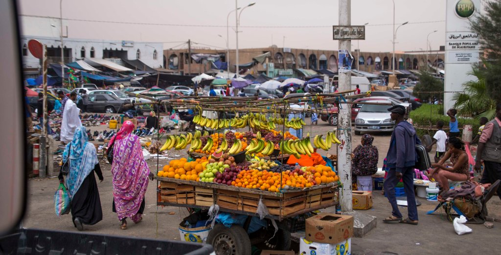 The capital of Mauritania and the capital of driving chaos!! Almost no car is damage free and barely any care is UK street legal, the only saviour for Mr Orange is the size and in Africa size determines status on the road.