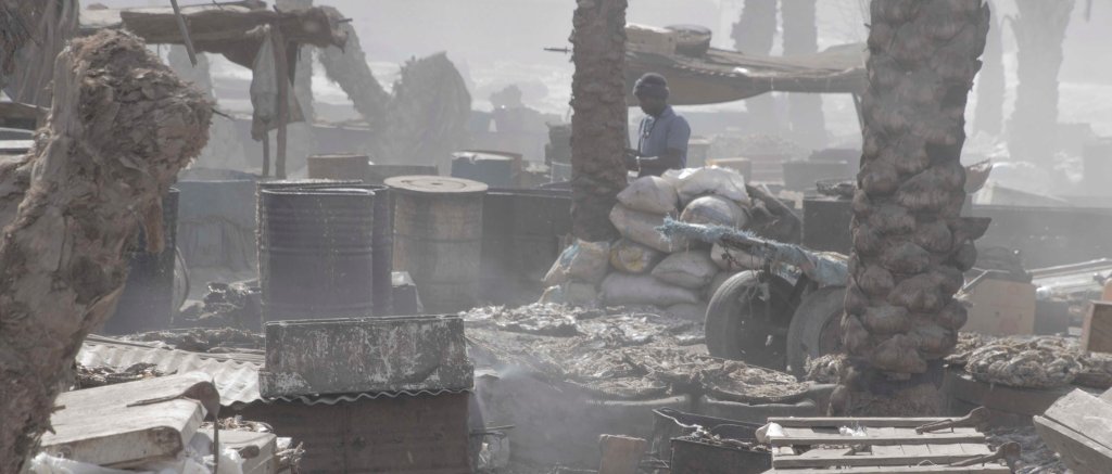 The backside of the market where waste is burned, food cooked, rotting food and garbage is thrown